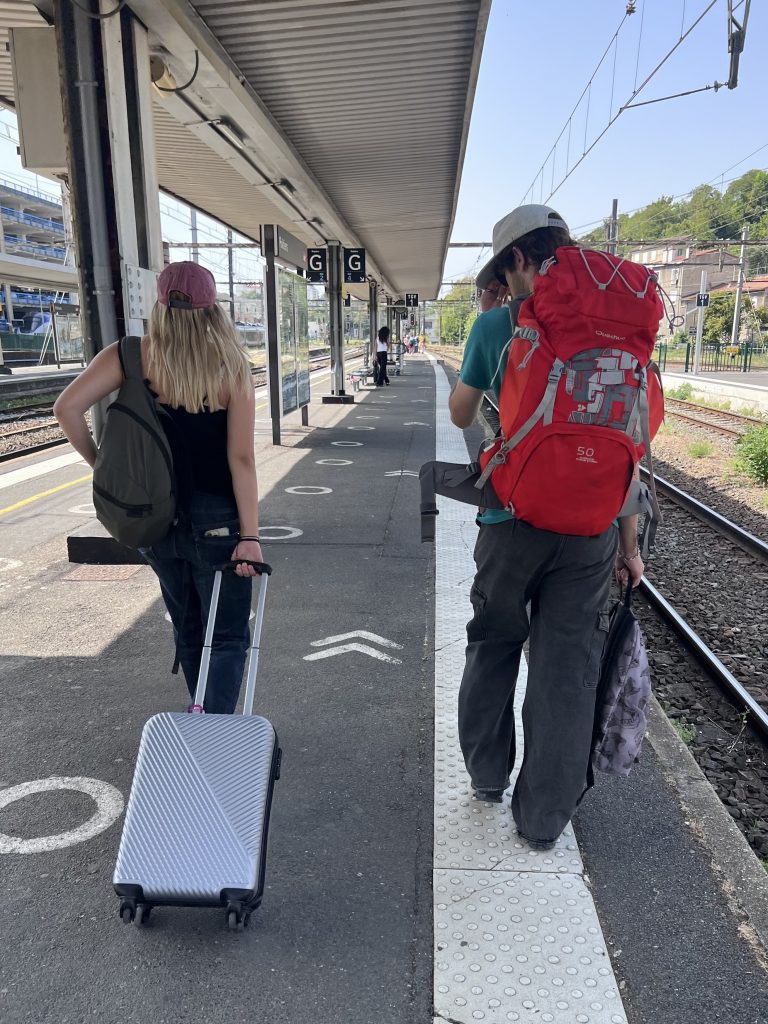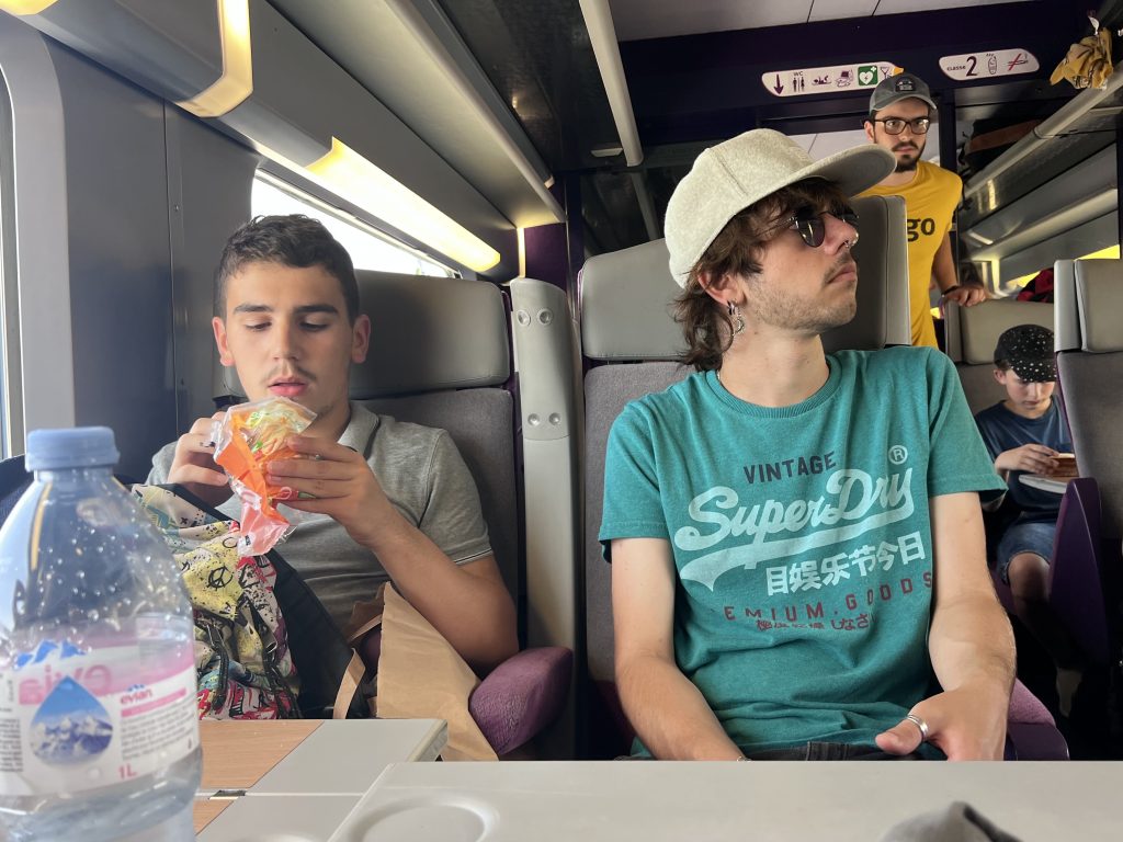 Pour l’heure, nous bouclons notre maison, embrassons le chat vaguement inquiet de tout ce remue-ménage et partons prendre notre train. Pas de bol : dans notre wagon se trouve une colonie de vacances de garçons pré-ados et ados occupés à casser la croûte dans un brouhaha de voix mi-baryton mi- contre ténor dans des effluves de saucisson- camembert ; un trajet féerique qui maintiendra tous nos sens en éveil.