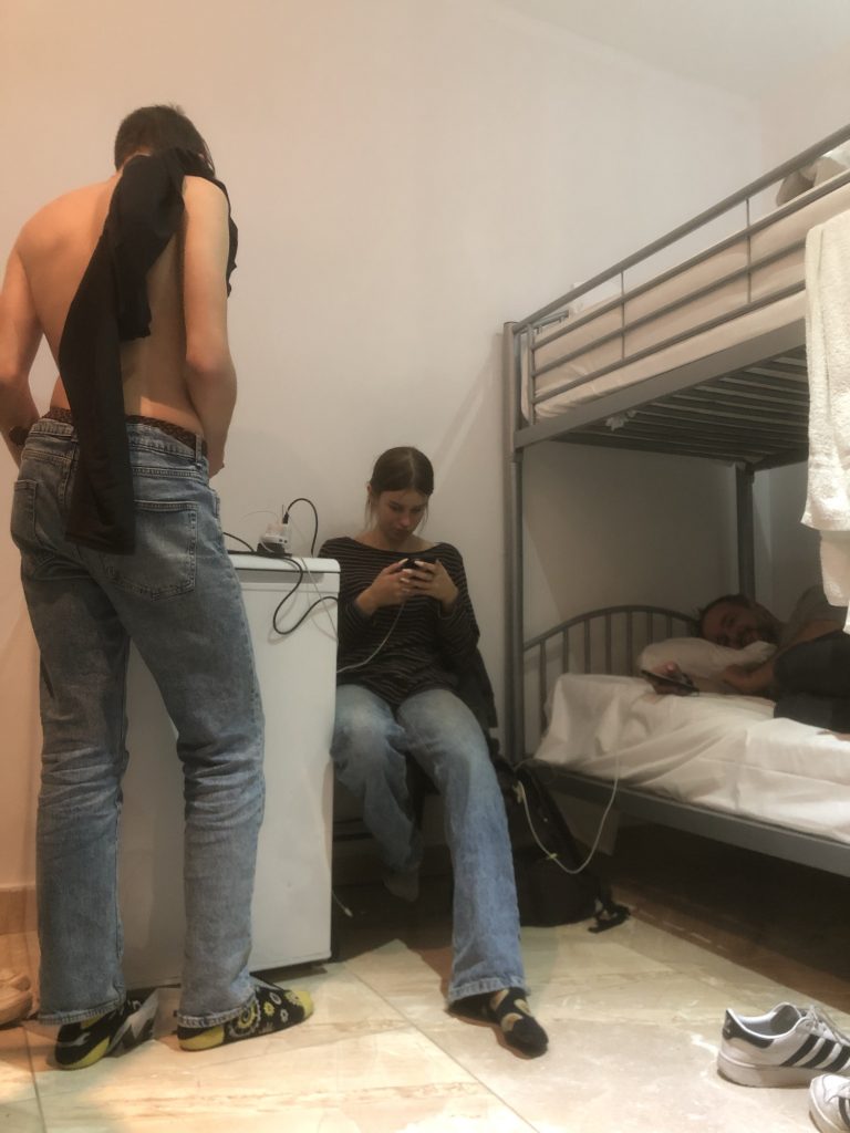 Nous prenons place dans notre piaule d’auberge de jeunesse, une pièce proprette de 15m2 contenant 2 lits superposés, une petite table, une armoire et un mini frigo émettant un ronron lancinant. Les toilettes et les bathrooms communes sont plus loin sur le palier, et leur état de propreté très relatif écourtera considérablement les sessions salle de bain. Diverses cuisines communes sont disséminées çà et là, et de leurs portes mi-closes s’exhalent des odeurs gastronomico-beurk qui n’incitent pas à la gourmandise.