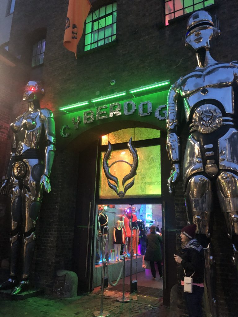 Nous sortons du salon et nous perdons dans de labyrinthiques galeries commerçantes regorgeant de boutiques toutes plus allumées les unes que les autres. Il y en a pour tous les goûts : gothique, baba cool, excentrique British, bouddhiste, rockabilly ou punk ; de la fringue, de l’accessoire, des bijoux, de la maroquinerie, du make up, des restos, et bien sûr des pubs qui se remplissent bien vite.