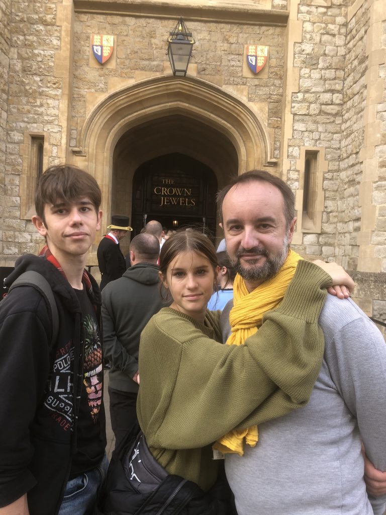 Le métro nous crache aux abords de la Tour de Londres, cette forteresse/prison/palais jalousement gardée par des hallebardiers en jupettes de toute beauté. Il est midi, les ventres vides depuis la veille gargouillent ; nous nous installons dans un Prêt-à-manger, une chaîne de sandwich fort commune dans le coin. La consigne est claire : se remplir le bide en bonne et due forme parce que le prochain repas sera le dîner ; vu les tarots locaux on ne fera que 2 repas par jour. 60 Livres les sandwichs, oh my gosh. Certes, c’est frais et plutôt goûtu, mais quand même ça pique. Valentin, ayant pris la consigne très au sérieux, a commandé plus qu’il ne pouvait manger ; on promènera un sandwich au canard dans toute la Tower of London (combien de sandwichs au canard peuvent se targuer d’avoir vu les joyaux de la Couronne ?). Pour la petite histoire, la balade du sandwich au canard prendra fin vers 16h, quand notre ado se découvrira subitement une dent creuse.