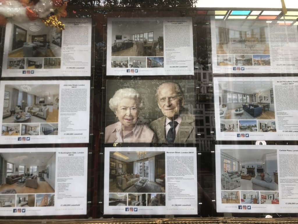 La digestion de ce gueuleton s’annonce laborieuse, aussi nous remettons-nous en route sans tarder, direction Big Ben, histoire de dire qu’on l’aura vu. Pendant que nous déjeunions, le cortège de la manif a décidé de s’y rendre car le Parlement se trouve ici aussi. Le trajet de notre bus est donc légèrement dévié, ce qui nous obligera à marcher un peu dans les quartiers très très très luxueux jouxtant l’Abbaye de Westminster. Rapide stop devant la vitrine d’une agence immobilière locale (au centre de laquelle posent, tout sourire, Fifi et Lizzie, très joli) ; compter 3.250.000 £ pour un 120m2 (et pour 999 ans, après quoi l’appart, en l’état, retournera dans le giron du duc de Westminster), on va rester dans le Poitou.