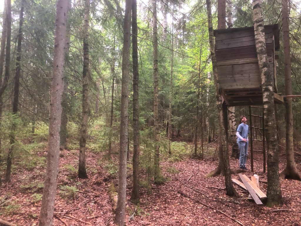 Nous partons explorer le bois, au bout de quelques mètres, sitôt dépassés les espaces « cabanes » des enfants du hameau, la progression s’annonce déjà difficile. Pas vraiment de sentier, beaucoup d’anarchie dans la pousse des sapins et des bouleaux, quelques roches vermoulues recouvertes de mousse, cette forêt finlandaise ne ressemble pas du tout aux nôtres.