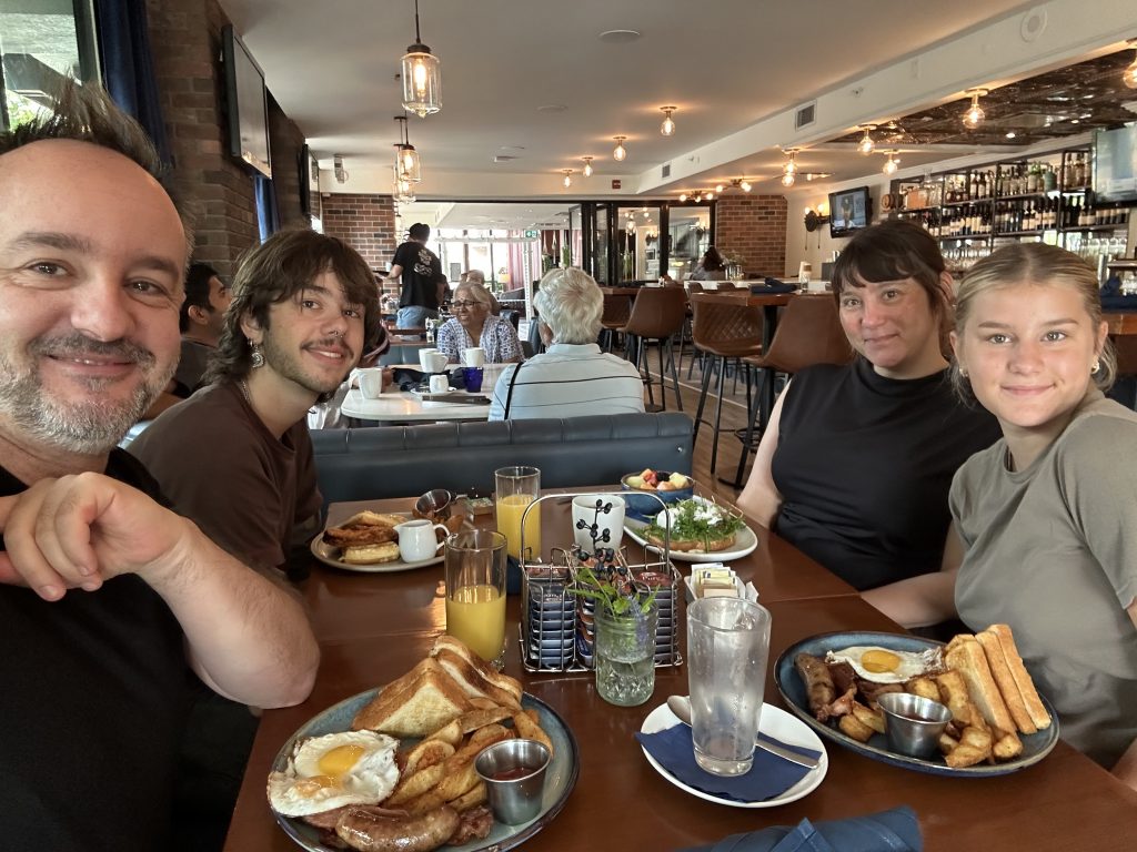 Réveil hirsute dans notre suite familiale de Richmond, un bled collé à Vancouver, un genre de Saint-Benoît local pour ceux qui situent.