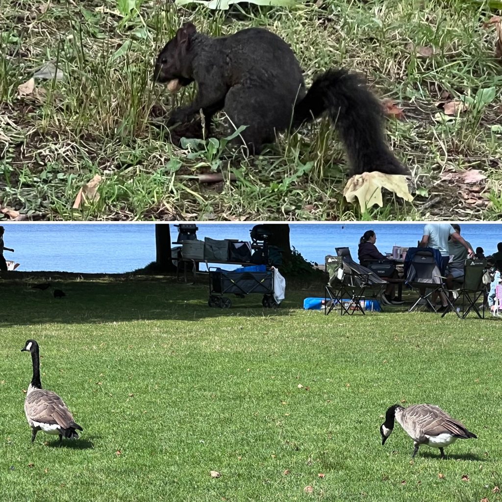 Nous sillonnons ce joli parc pendant des heures, marchant doucement, jouant, admirant, papotant, nous régalant des curiosités qui nous entourent. Le parc est ceint d’une large bande de bitume séparée en deux – l’une étant dévolue aux piétons et l’autre aux vélos, rollers, tandems et autres trottinettes – et comme à l’accoutumée les passants sont très respectueux les uns des autres et évoluent en harmonie.