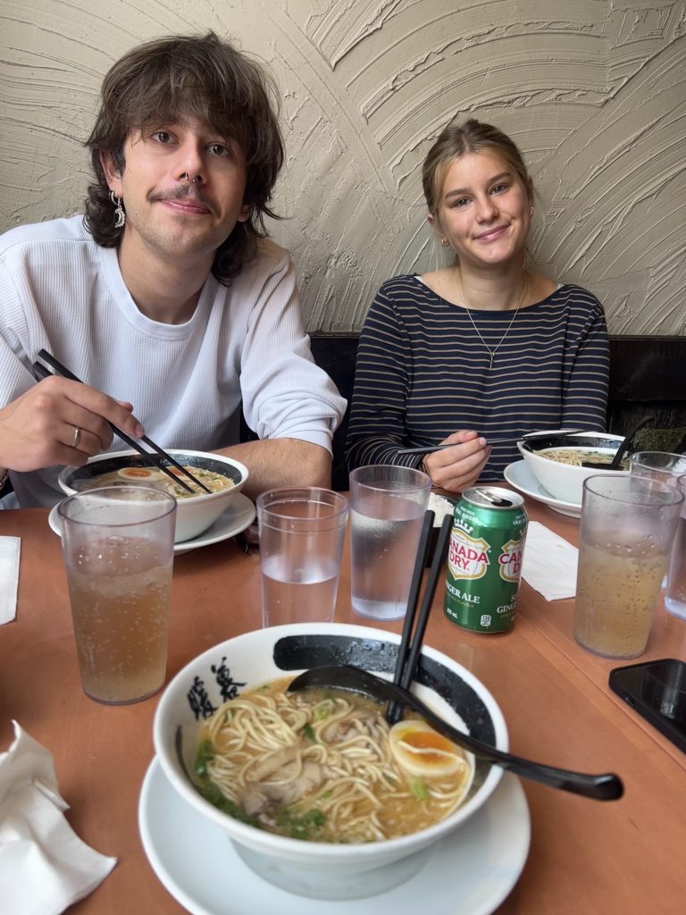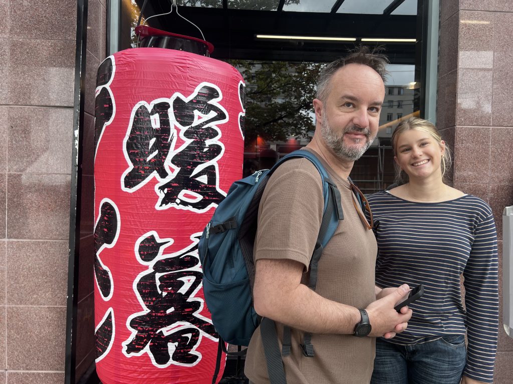 Pas de petit dej au programme ce matin puisque nous avons repéré un resto de ramen à un jet de pierre de l’hôtel. Difficile de le rater : de son ouverture (11h du mat’) à sa fermeture vers 23h, il affiche toujours complet et une longue file d’attente zig-zague en permanence devant ses portes. Intrigués, nous décidons d’aller y manger et nous patientons donc jusqu’à 11 heures.