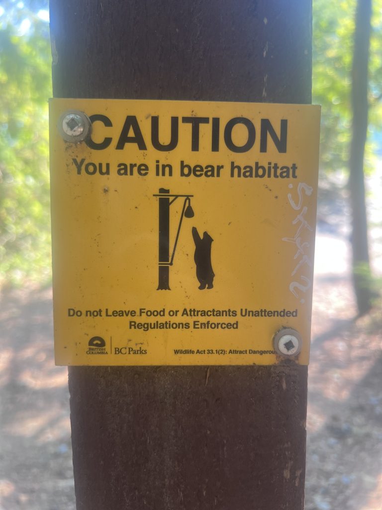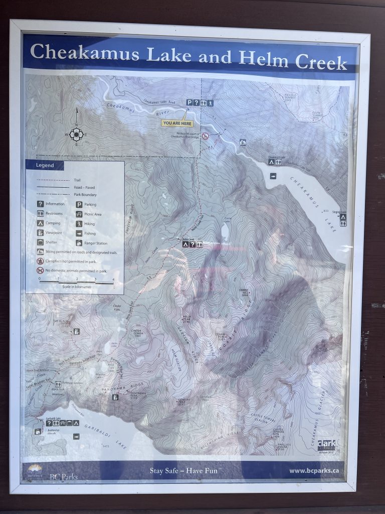 Pour accéder au parc naturel Cheakamus (et dans de nombreux autres parcs naturels du coin), il faut préalablement se déclarer auprès d’une autorité régionale, la BC Parks, et obtenir un laisser-passer, aussi bien pour randonner que pour camper une nuit ou deux. Ainsi est régulé le nombre des personnes présentes sur site, ce qui est fort utile pour la préservation des lieux mais aussi pour savoir à qui on a affaire en cas de sauvetage d’urgence. Dans une cahute à l’entrée du parc sont postés 2 fonctionnaires qui contrôlent les pass et dispensent des conseils : que faire en présence d’un fauve, comment rationner son eau… c’est à la fois sécurisant et un peu flippant.